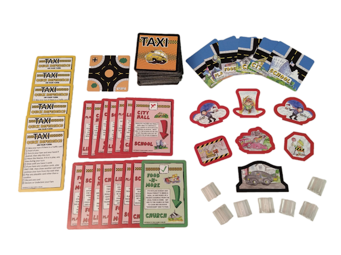 Get ready to navigate the streets and outsmart your rivals in Taxi, a fast-paced board game of strategy and road-building!